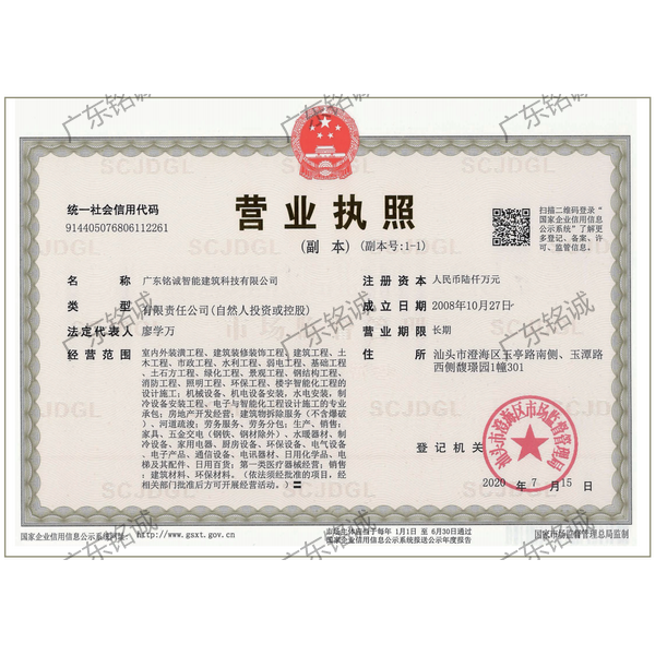 廣東銘誠智能建筑科技有限公司成立于2008年,公司注冊資金為6000萬元,集辦公裝修、酒店裝修、家庭裝修、軟裝裝飾、娛樂場所裝修為一體的裝飾公司,率先提出“創(chuàng)造現(xiàn)代人文空間,挑戰(zhàn)業(yè)界高峰”的雄壯口號,并以此為目標(biāo),完成了一大批具有影響力的大型公裝工程:其中包括廣州國際中醫(yī)藥展貿(mào)中心、奧飛澄海音樂廳、澄海區(qū)國家稅務(wù)局、澄海興信小額貸款、澄海潮商村鎮(zhèn)銀行、汕頭龍湖賓館、澄海豪庭大酒店、御園國際飲食城、澄海福晉軒酒家、享樂匯保健有限公司、假日商務(wù)酒店、尚景康園物業(yè)、星輝車模股份有限公司、奧飛動(dòng)漫有限公司、香港國際玩具、汕頭萬基貿(mào)易有限公司、泰興源實(shí)業(yè)有限公司、汕頭皇冠玩具有限公司等;家裝工程包括南澳黃金海岸整幢的精裝房、中信華府、富春華庭、金信鳳凰名城、凱旋花園、中信金城、柏嘉半島、陽光海岸、金葉島等高等住宅。 ? 廣東銘誠智能建筑科技有限公司經(jīng)過十余年的建筑裝飾裝修施工領(lǐng)域項(xiàng)目積淀,于2018年2月取得“建筑裝修裝飾工程專業(yè)承包二級”、“建筑機(jī)電安裝工程專業(yè)承包三級”、“建筑工程施工總承包三級”、“施工勞務(wù)不分等級”、“安全生產(chǎn)許可證”等專業(yè)資質(zhì),并于2021年8月建筑裝修資質(zhì)正式升級為“建筑裝修裝飾工程專業(yè)承包一級”。這是對企業(yè)規(guī)模、工程業(yè)績、管理水平、誠信表現(xiàn)的肯定,是企業(yè)實(shí)力與能力的展現(xiàn)。 ? 公司每一項(xiàng)工程都始終堅(jiān)持“精美設(shè)計(jì)、精心施工、確保合同承諾;勤奮開拓、追求突出、創(chuàng)造時(shí)代精品”的質(zhì)量方針,力爭做一項(xiàng)工程,樹一座豐碑。 ? ?銘誠擁有一支由專業(yè)的營銷精英和客戶顧問組成的營銷隊(duì)伍,勤奮、敬業(yè)的每一位銘誠員工將本著“贏在別人休息時(shí)”的專業(yè)精神,為客戶提供全程營銷及售后服務(wù),確保客戶的合法利益,提供體貼周到的服務(wù),做到讓顧客滿意。 ? 銘誠擁有一批資老牌室內(nèi)環(huán)境設(shè)計(jì)師,以“現(xiàn)代人文空間”為設(shè)計(jì)理念,為客戶提供人性化、差異化、智能化的室內(nèi)環(huán)境設(shè)計(jì)服務(wù),準(zhǔn)確的將人性化特點(diǎn)與室內(nèi)環(huán)境相融合,達(dá)到了“現(xiàn)代人文空間”的和諧統(tǒng)一。 ? ? ? ?自主創(chuàng)新、視社會責(zé)任為己任的精神使我們在發(fā)展的道路上屢獲殊榮:不斷提升的銘誠品牌知名度和美譽(yù)度,靠的是優(yōu)質(zhì)的產(chǎn)品,靠的是不斷提升的營業(yè)績,靠的是國內(nèi)的核心技術(shù)和誠信的服務(wù)。相信通過銘誠人的努力,銘誠將會不斷以新的姿態(tài)為提升廣大消費(fèi)者的生活質(zhì)量做好服務(wù),為中國裝飾行業(yè)設(shè)計(jì)創(chuàng)新做出突出貢獻(xiàn)。 ? ? “忘掉競爭、共